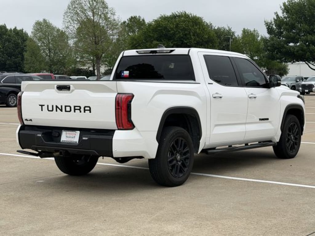 This Tundra’s 3.4L turbocharged V6 engine paired with a 10-speed automatic transmission delivers smooth, responsive power whether you’re towing heavy loads or navigating rugged terrain. Four-wheel drive and a brake-actuated limited-slip differential provide exceptional traction and control, making it ready for work sites or weekend adventures. Inside, premium leather bucket seats with heating, cooling, and adjustable lumbar support ensure comfort on long drives, while seat memory settings personalize your experience. The advanced safety suite includes blind spot monitoring, lane departure warning, front collision mitigation, and cross-traffic alert, all designed to keep you and your passengers protected. Adaptive cruise control and steering assist make highway driving less stressful, and the multi-zone climate control keeps everyone comfortable. Convenience features like a hands-free back-up camera, power folding mirrors with memory, and a smart device integration system keep you connected and in command. Rugged aluminum wheels and LED headlights add to its commanding presence, while the tow hitch and all-season tires mean this Tundra is ready to handle whatever you throw its way. This is a truck built for those who work hard and play harder.