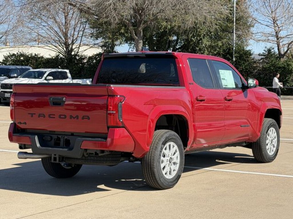 Introducing the 2026 Toyota Tacoma SR5, a truck that embodies power and precision for those who seek adventure at every turn. With its striking Supersonic Red exterior, this 4D Double Cab is more than just a vehicle; it's a statement of style and capability. Under the hood, the robust 2.4L 4-Cylinder engine paired with an 8-speed automatic transmission ensures a smooth yet powerful drive, perfect for both city streets and rugged terrains. Safety takes center stage with features like Blind Spot Monitor, Lane Departure Warning, and Front Collision Mitigation, offering peace of mind on every journey. The Tacoma SR5's Adaptive Cruise Control and Lane Keeping Assist make long drives effortless, while the Back-Up Camera and Cross-Traffic Alert enhance your awareness in tight spots. Inside, enjoy the convenience of Keyless Start and the connectivity of a WiFi Hotspot, keeping you in touch no matter where the road leads. Whether towing with ease using the Tow Hitch or navigating with precision thanks to Stability Control, the Tacoma SR5 is engineered for those who demand more from their drive. Embrace the road ahead with the 2026 Toyota Tacoma SR5, where adventure meets reliability.