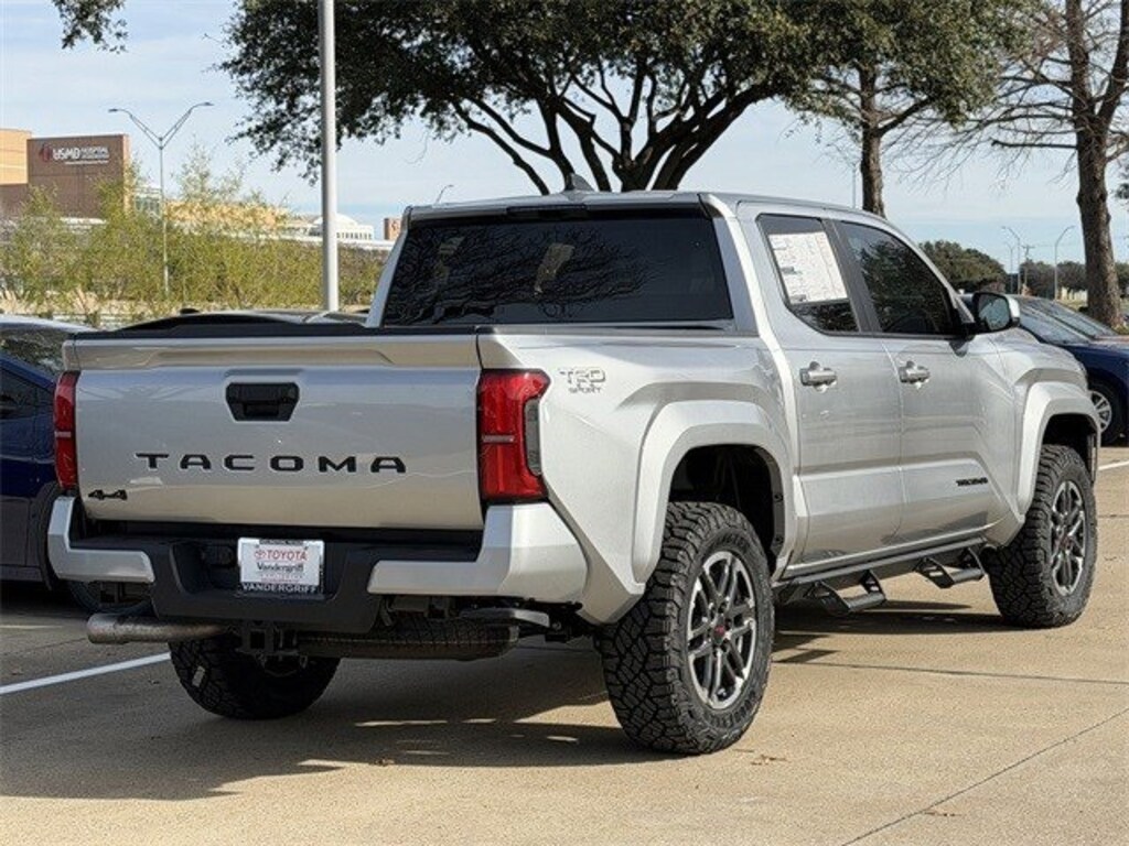 Experience the road less traveled with the 2026 Toyota Tacoma TRD Sport, a vehicle designed for those who crave adventure and demand reliability. This new model, with its Celestial Silver Metallic exterior, exudes a rugged elegance that perfectly complements its robust capabilities. Powered by a dynamic 2.4L 4-Cylinder engine paired with an 8-speed automatic transmission, the Tacoma TRD Sport offers seamless power delivery and exceptional fuel efficiency, making it ideal for both urban commutes and off-road escapades.