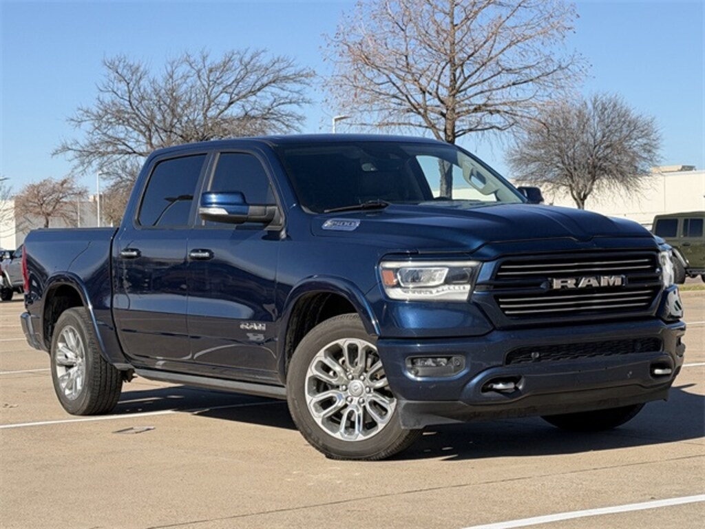 Conquer the Road with Power and Style: Discover the 2021 Ram 1500 Laramie in Patriot Blue Pearlcoat, Where Performance Meets Luxury in Every Mile.