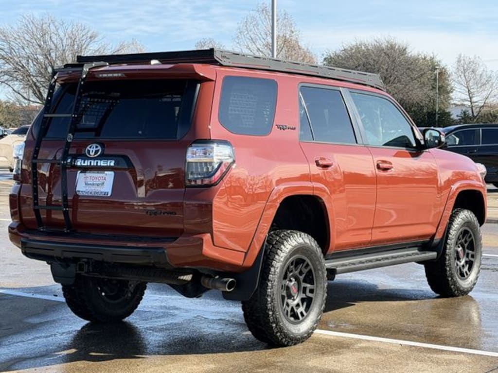 Inside, the 4Runner TRD Pro offers premium synthetic seats with heated front options for ultimate comfort during long journeys. The power-adjustable driver and passenger seats, along with a heated steering wheel, ensure a tailored driving experience. Stay connected and entertained with the advanced navigation system and premium sound system, while the WiFi hotspot and smart device integration keep you linked to the world.