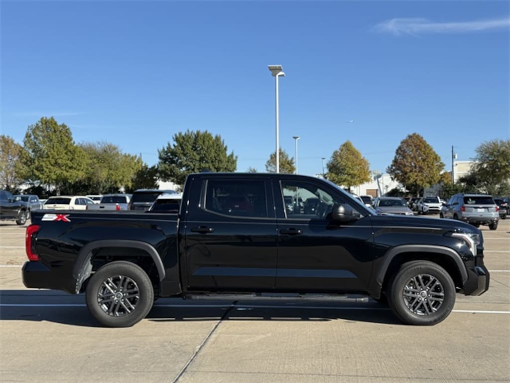 Step into the realm of rugged sophistication with the 2024 Toyota Tundra SR5. This used marvel, with its commanding Midnight Black Metallic exterior, is designed for those who appreciate both power and precision. At the heart of this beast lies a robust 3.4L V6 engine, paired with a seamless 10-speed automatic transmission, ensuring every journey is as smooth as it is powerful. The 4D Crewmax body style offers ample space for both passengers and cargo, making it ideal for weekend adventures or daily commutes. The Tundra SR5 is more than just a truck; it's a statement of strength and reliability. Its advanced engineering and thoughtful design cater to the needs of those who demand more from their vehicle, whether it's towing heavy loads or navigating challenging terrains. Experience the perfect blend of performance and practicality with a truck that stands ready to tackle any challenge, delivering an unparalleled driving experience every time you hit the road.